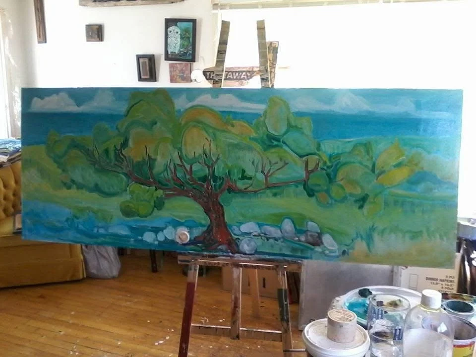 As a gift to myself, I recorded a jazz album for my 40th birthday. Many of my friends bought a copy to support me, including my old friend from high school, Sarah Irwin. She is an amazing visual artist living out in Nova Scotia. A few months after she got my CD, she sent me a photo of a stunning painting she had done while listening to my album. She painted it on the back of an old wooden door.
